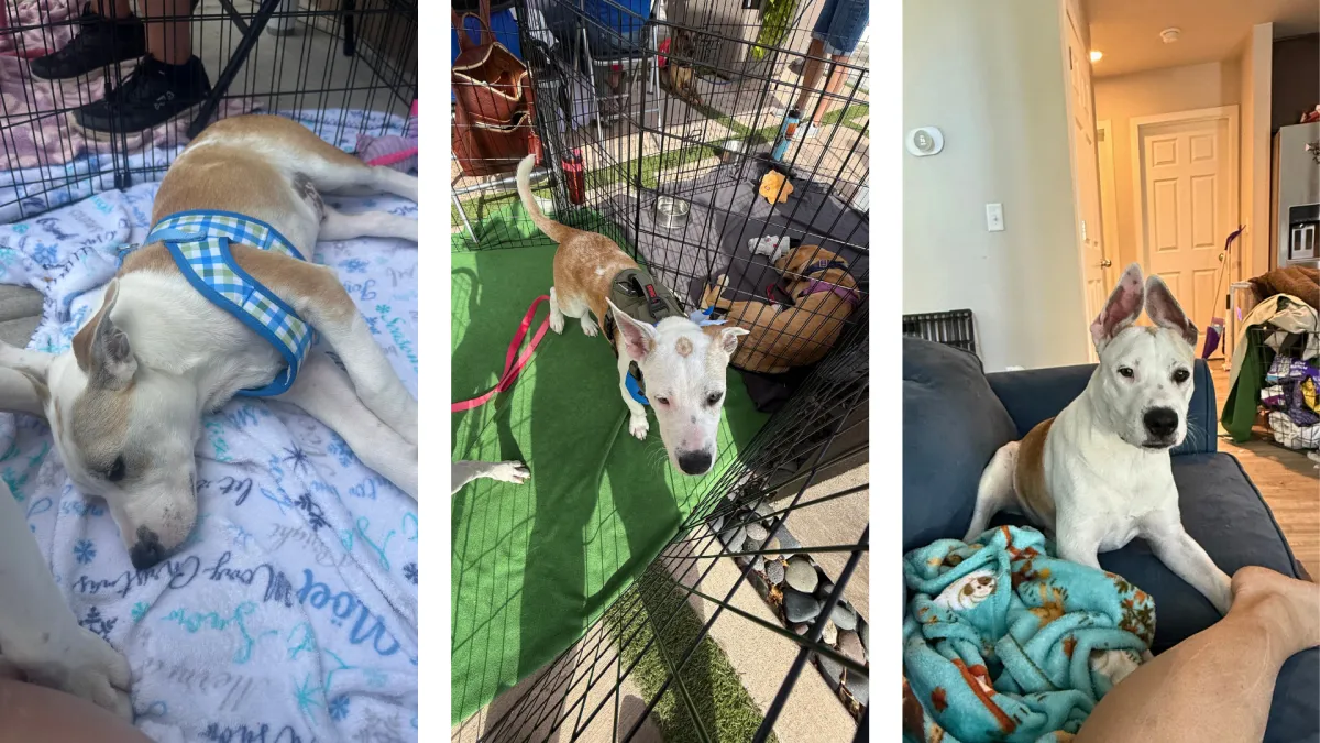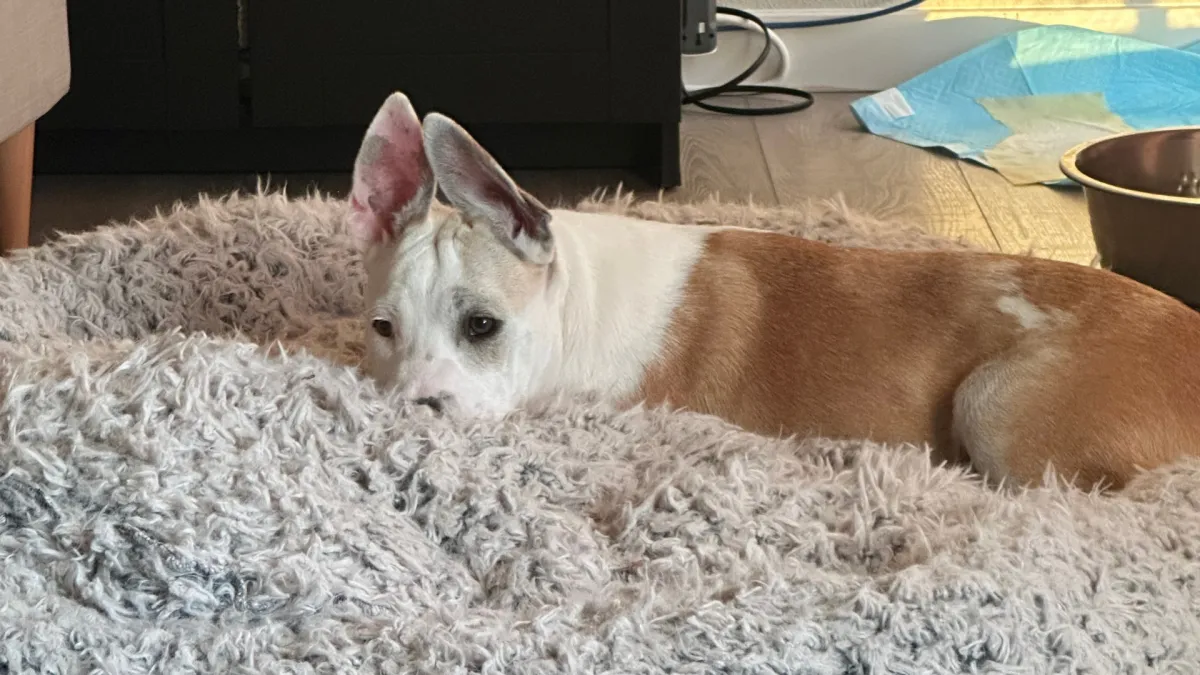 Gus isn’t fully potty trained yet, but he’s doing well with puppy pads and is great with the doggie door. After a minor medical setback, he’s bounced right back and goes into his crate like a champ, sleeping through the night without a peep. Even sweeter, he’ll often tuck himself into his crate for a nap all on his own — absolutely precious! He also travels like a pro, loving car rides, and packs a whole lot of charm into his short frame.