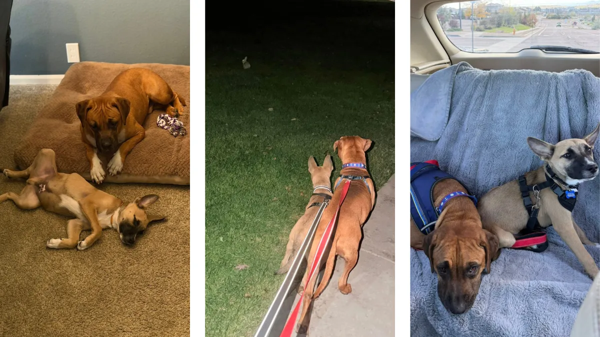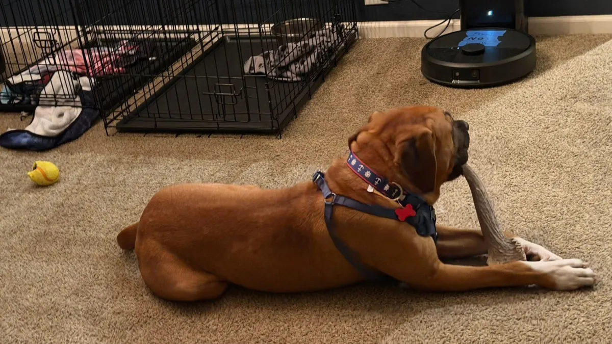 We’re currently working on crate commands, and he’s picking them up quickly. BG is also a super chewer, so he’ll need durable toys (antlers are his favorite!). Best of all, he’s incredibly gentle and not at all possessive—he happily shares food, toys, and his space with his buddy Comet.