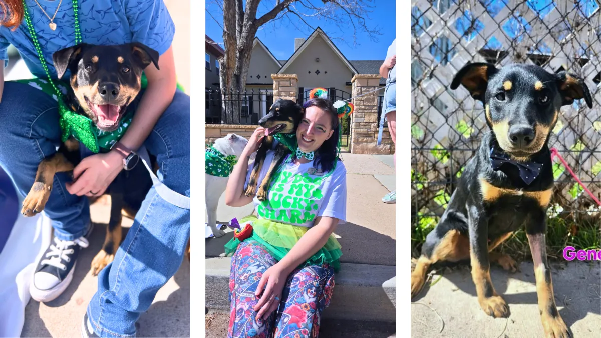 He has great house manners and uses the doggie door with no problem. Gene is kennel trained and sleeps well in his crate at night, though if given the chance he will happily hop into bed for extra snuggles. He’s also picked up on routines quickly—when his foster grabs the food bowls and heads toward the kennel, Gene is already there waiting patiently for dinner.