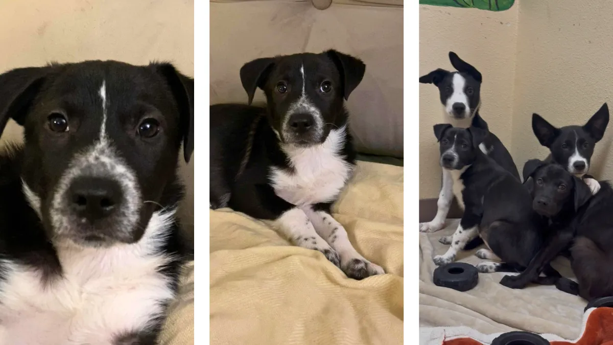Her crate is her safe space, and she is crate trained. She may cry briefly when first crated, but she settles and recovers quickly. Maple is not yet house trained and has not learned to use the doggie door. At this time, the door needs to be left open for her. With consistency, routine, and patience, she will continue to progress at her own pace. Maple has not been around kids or cats, so a quiet, adult-only home or one with dog-savvy older teens would be best. Several of her siblings were also fearful at first but are now thriving in their adoptive homes, showing how much these pups can blossom once they feel safe. One of Maple’s sisters took about two weeks to warm up and is now a confident, happy girl.