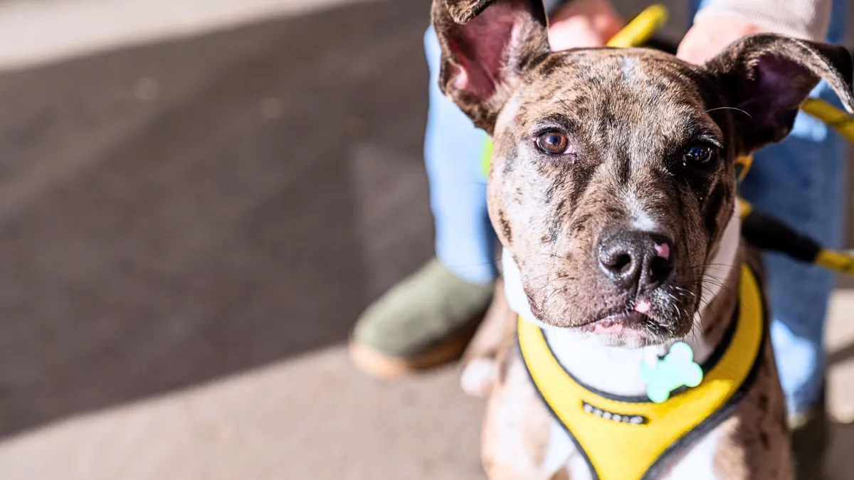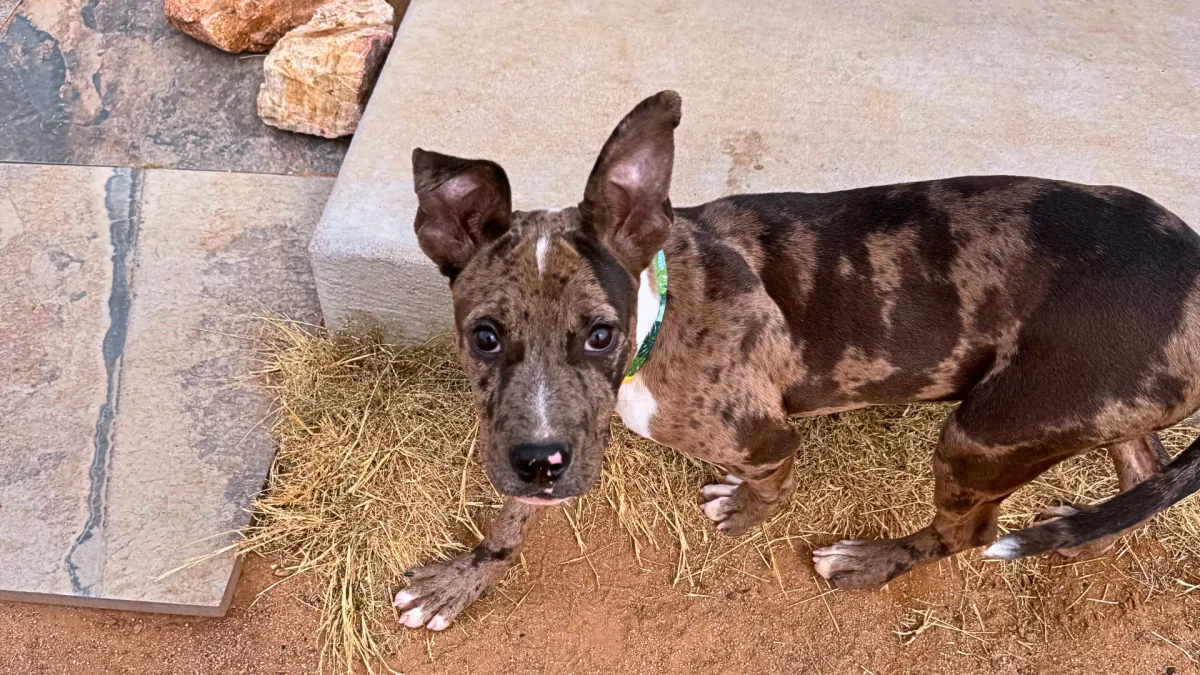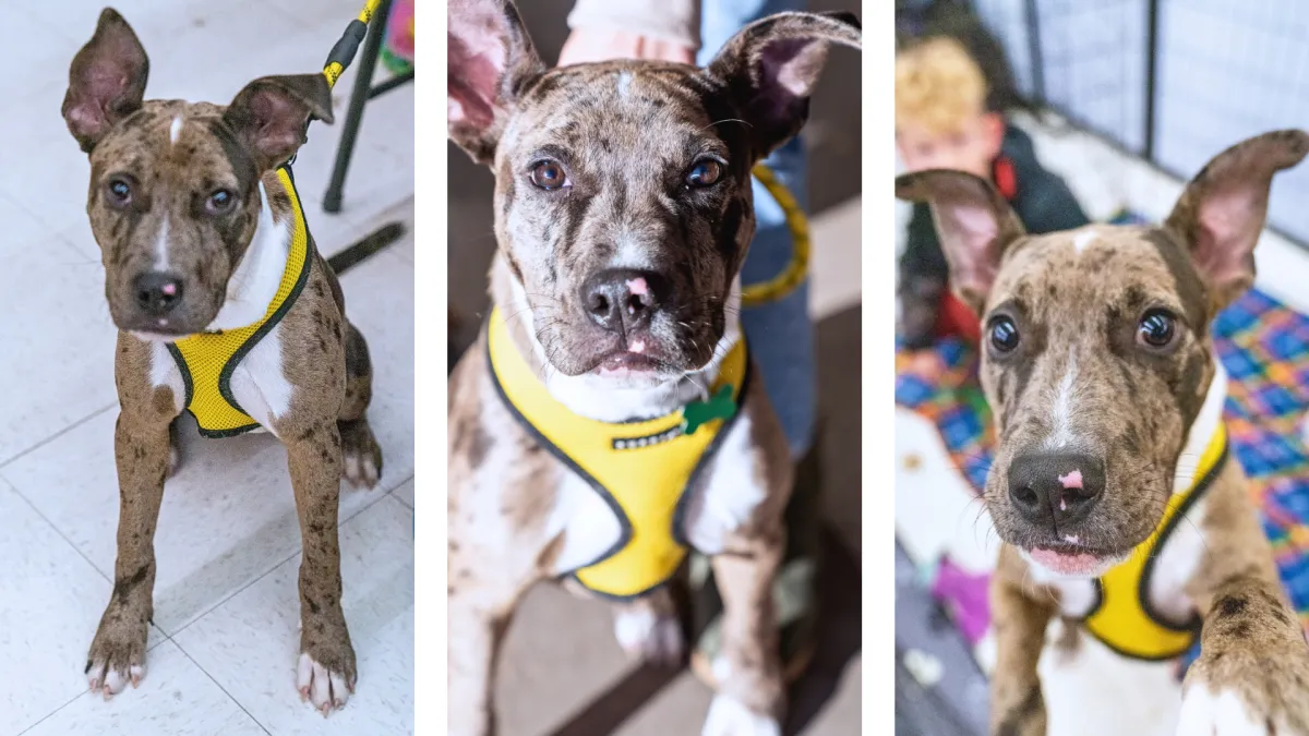 Mercy is a beautiful spunky, spotted girl, who with training and patience will be a great dog. Mercy loves the companionship of another dog and has endless energy to give, she would do great as a second dog in a family. At times, Mercy's nose can get her in trouble, she will do best in a home with people experienced in dog training. She knows "sit", "down" and is working on "wait". Mercy is learning to go to the door to tell us when she needs to go out. She has never had any poop accidents, but sometimes has a potty accident once a day. Mercy does well with kids ages 4 and up (she was very overly curious when meeting a baby). Mercy does excellent in a crate and with the right family she will thrive. She behaves like a typical 6 month old pup, but with time she will continue to calm down.