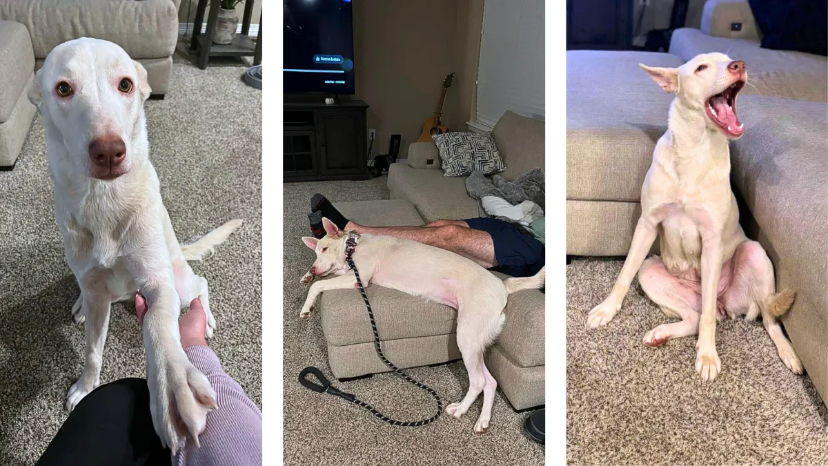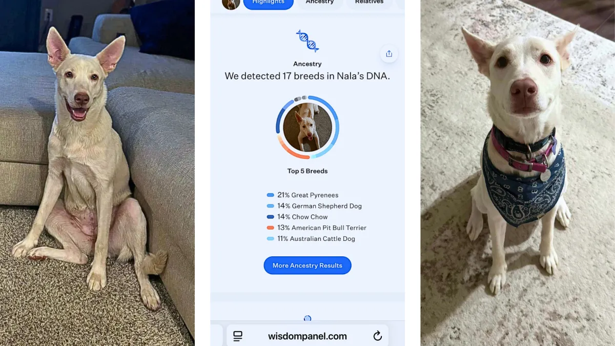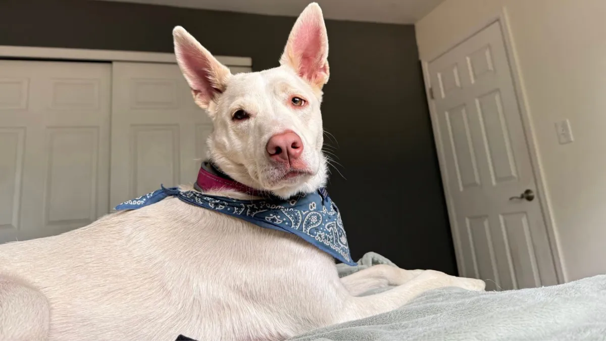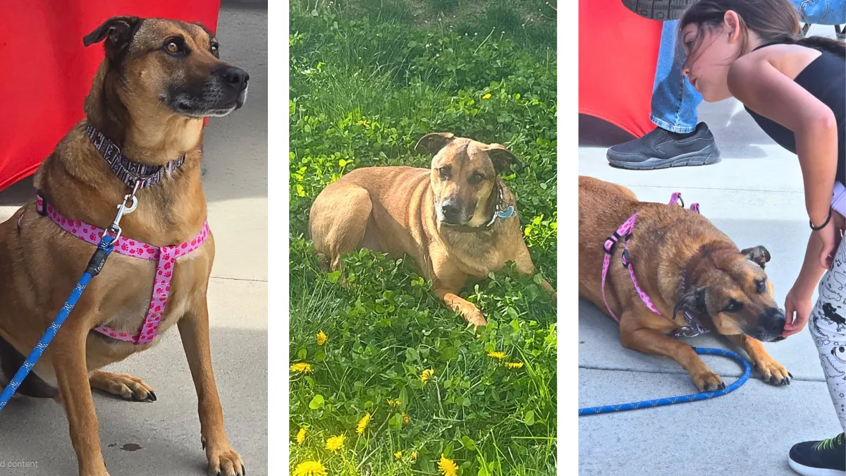 Meet Nala! Nala is a sweet and playful 1-year-old Pyrenees/Husky mix looking for her forever home! She loves to chase tennis balls, frisbees, and the occasional squirrel, and she’s always ready for a walk or adventure. When playtime winds down, she’s a total cuddle bug who loves being close to her people. Nala gets along well with other dogs, though she can be a little intimidated at first — slow, supervised introductions work best. She has started showing her fun, puppy-like side with other dogs and enjoys playing once she feels comfortable. She can be protective of her people at first and sometimes resource guards toys, so she’ll do best with a family committed to consistency, structure, and positive training. She’s both kennel trained and house trained, though she really doesn’t like being left alone, especially at night. Nala prefers being near her people, and she’s happiest when she can be part of the action instead of tucked away upstairs by herself. This smart girl already knows sit, shake, down, and stay (especially if freeze-dried beef liver is on hand — her favorite!) and she’s working on fun new tricks like spin and place. She is eager to learn when motivated with the right treats and attention. While cats aren’t her favorite companions, Nala’s affectionate, playful personality shines bright. She’ll make the perfect adventure buddy for an active family — and an equally wonderful snuggle partner when it’s time to relax.