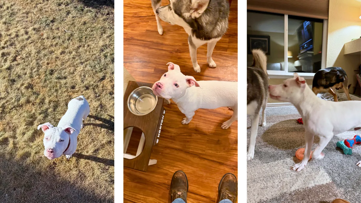Orion is playful and toy-obsessed, especially when there’s something fun to toss or chew. He does great on car rides and is very treat-motivated, which makes training a fun and rewarding experience. He already knows sit and stay using hand signals, and we are currently working on come.