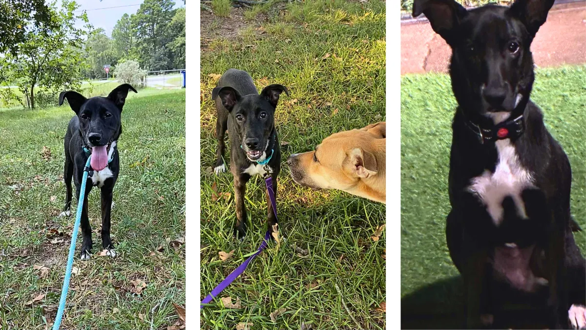 Panther is a sweet, timid pup who’s just starting to come out of her shell—and she’s already melting hearts along the way. At a young age, this black-and-white Lab mix is the perfect blend of playful and cuddly. She adores other dogs and feels most confident when she has a doggy friend to show her the ropes. Panther is very treat motivated and eager to learn, which makes training a breeze! She’s currently working on crate training, potty training, and leash walking in her foster home. Panther tends to be shy at first but loves following her people around like a little shadow once she feels safe. She’s gentle, affectionate, and would thrive in a calm home that can help build her confidence while giving her all the love she deserves. If you're looking for a soft-hearted pup who just wants to be your best friend, Panther is ready to join your pack