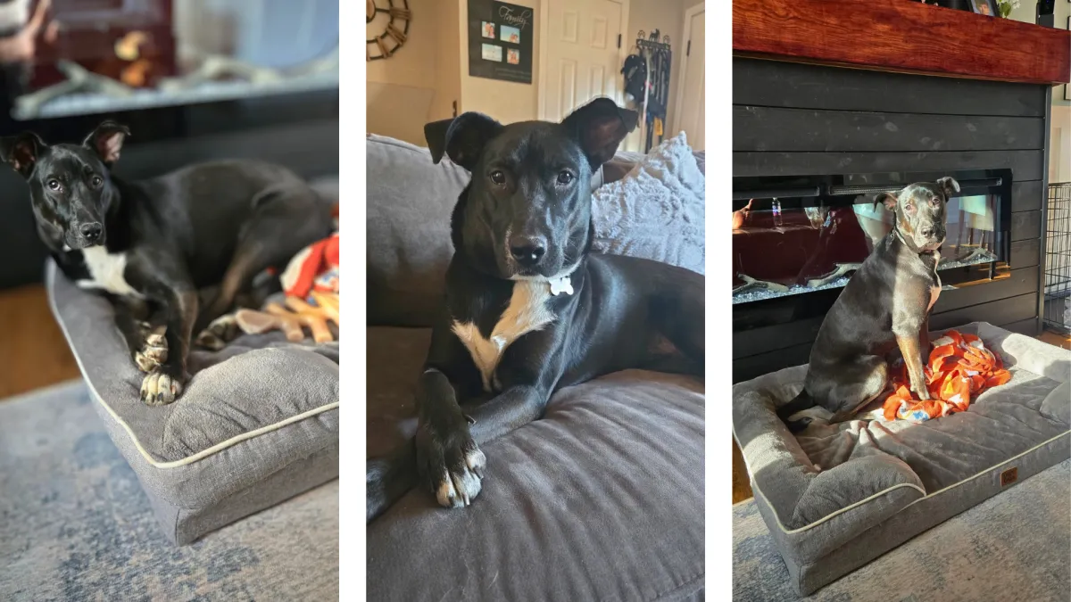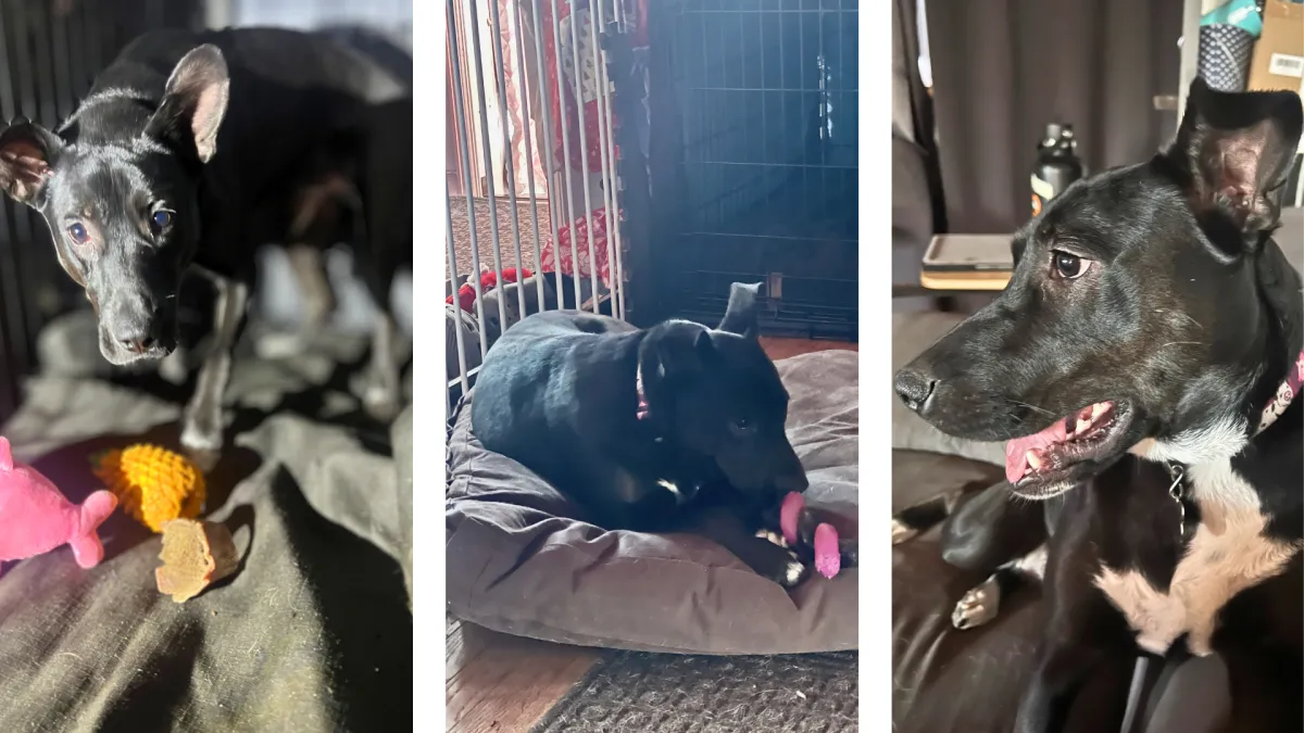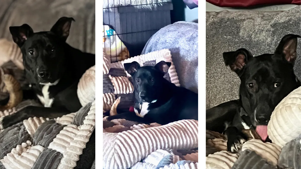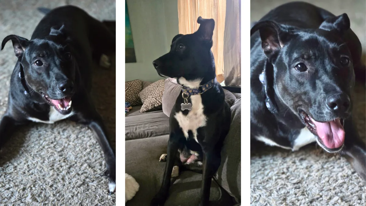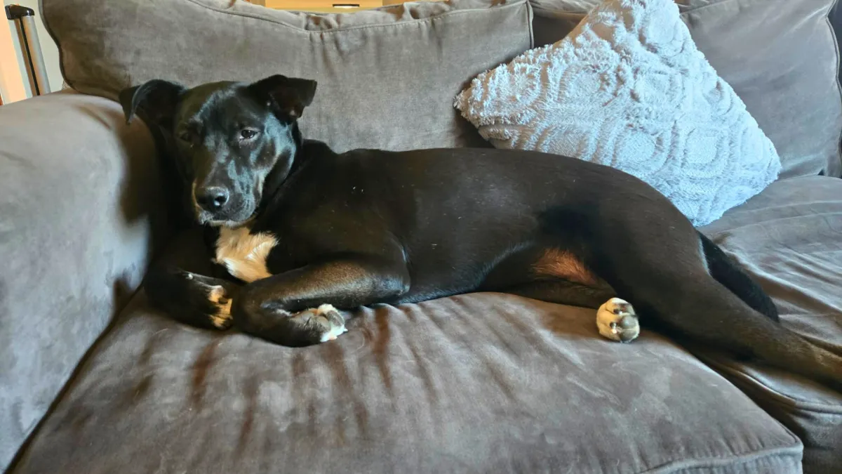 Meet this sweet, playful girl who’s ready to steal your heart. She’s energetic, affectionate, and full of personality. She’s the kind of dog anyone would be lucky to have. She can be a little timid when first meeting new people but give her a bit of time and gentle trust-building and she blossoms into a total lovebug who will make you laugh daily. She tends to warm up quickly to women, (she needs just a little extra time for men) and, once she bonds with you, she’s all in - your loyal shadow who just wants to be wherever her people are. She was very polite and happy to hang out where the action was when her foster family had a few friends over. One of her cutest quirks? She loves watching TV on the couch with you (yes, really). Action scenes and animals are her absolute favorite, and she gets adorably excited following along. She’s house trained, though she can be nervous to venture outdoors alone. She’d love to have a confident canine friend to show her the ropes. She is comfortable in her crate when you’re away and sleeps through the night. Even though she’s still in her puppy years, she’s impressively well behaved and just needs a little fine-tuning with her manners. She adores other dogs and is always eager to play. Walks are a work in progress. She enjoys them but she gets excited when she sees potential new doggy friends She’s eager to please and learning more every day. This girl is ready to be part of a family who will give her patience, love, and a cozy spot on the couch. In return, she’ll give you loyalty, laughter, and a whole lot of love.