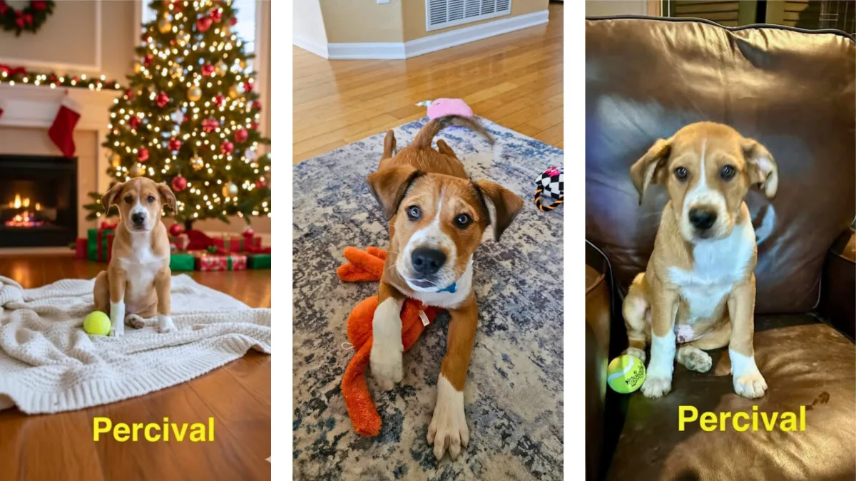 Percival is a lovable, goofy sweetheart who’s equal parts cuddle bug and playful adventurer. He adores snuggling up with his people, bouncing around with excitement, and chewing on his favorite toys. This boy has a zest for life that’s impossible not to smile at.
