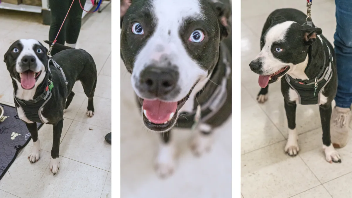 Meet Timber, affectionately nicknamed “Tim Burton” by his foster family for his dramatic tuxedo coat, piercing glacier-blue eyes, and expressive, movie-worthy face. This one-year-old mystery mix is neutered, fully vaccinated, and ready to find his forever home.